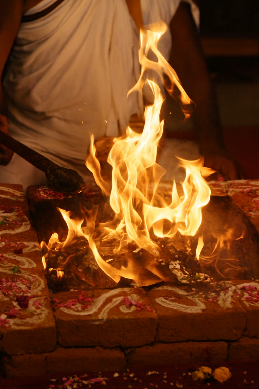 Powerful fire rituals conducted by experienced priests to remove negativity and bring spiritual growth.